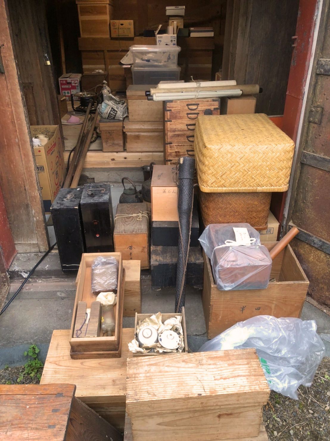 蔵・納戸整理に伴う古道具や箪笥、籠、焼き物、お茶道具の買い取り 2026.03.25 買取実績 ご自宅の蔵整理に伴い、箪笥、焼き物、お茶道具、古道具を買取させていただきました。一見すると処分してしまいそうなお品の中にも、買取ができるものが残って入りことがあります。らくだやでは、骨董品だけではなく、古い生活道具や木箱、まとめて出てきたお品まで幅広く対応しております。蔵・倉庫・空き家・実家整理の際には、処分前にぜひご相談ください。